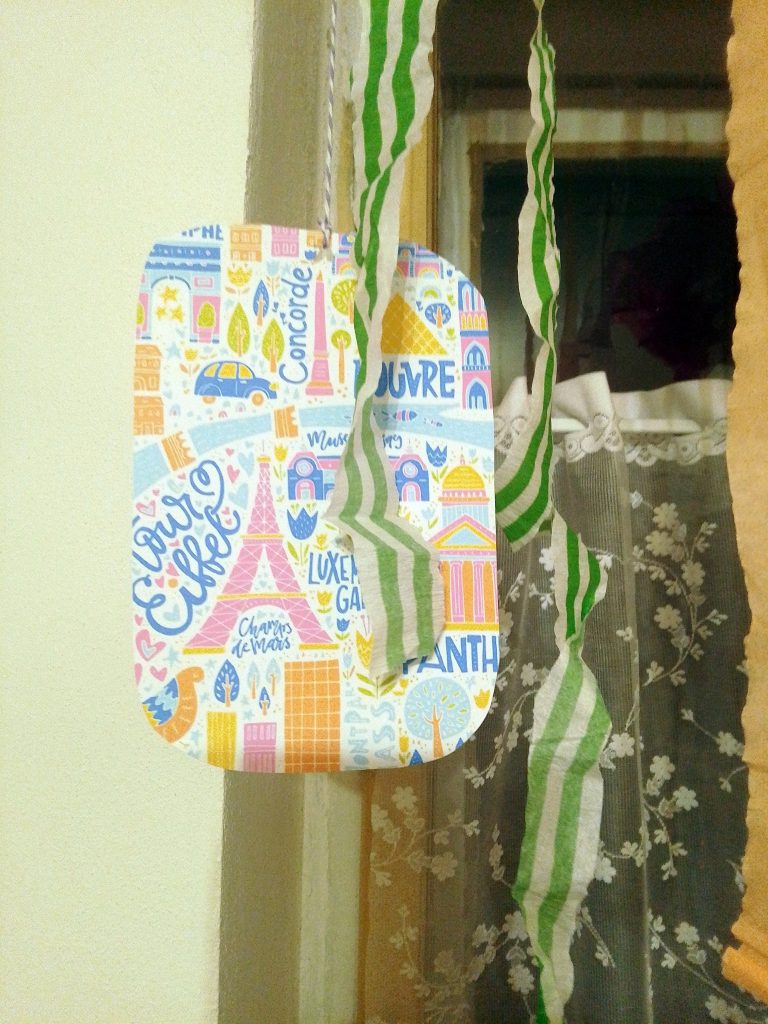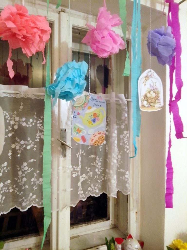 s pomocí krepového papíru a tiskárny vytvořila malou dekoraci,