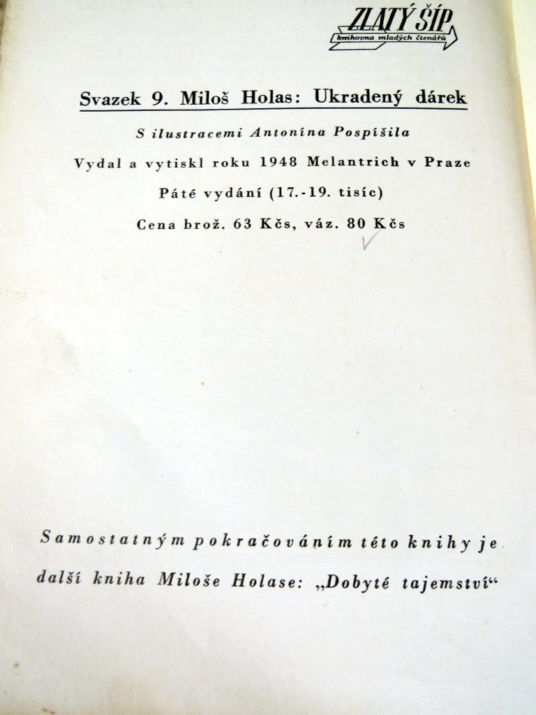 Už jsem se zmínila že v tom knihkupectví je další místnost, kam musíte sejít po dvou schůdkách? Pan knihovník, který vám předtím nabídne sklenku vína, čaj nebo kávu, vám v něm rozsvítí. přivítá vás velké křeslo, starý psací stroj a regály plné starých knih. Antikvariát. Kouzelné slovo které mne provází skoro celý život. Našla jsem tam další dárek. Ukradený dárek!!
