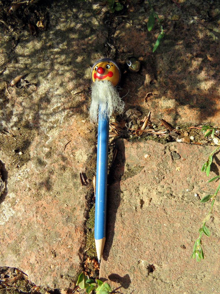 A tužku se skřítkem, kterou mi daroval můj taťka když mi bylo hodně málo. Skřítek se chechtá až mu rolnička na čepici cinká.