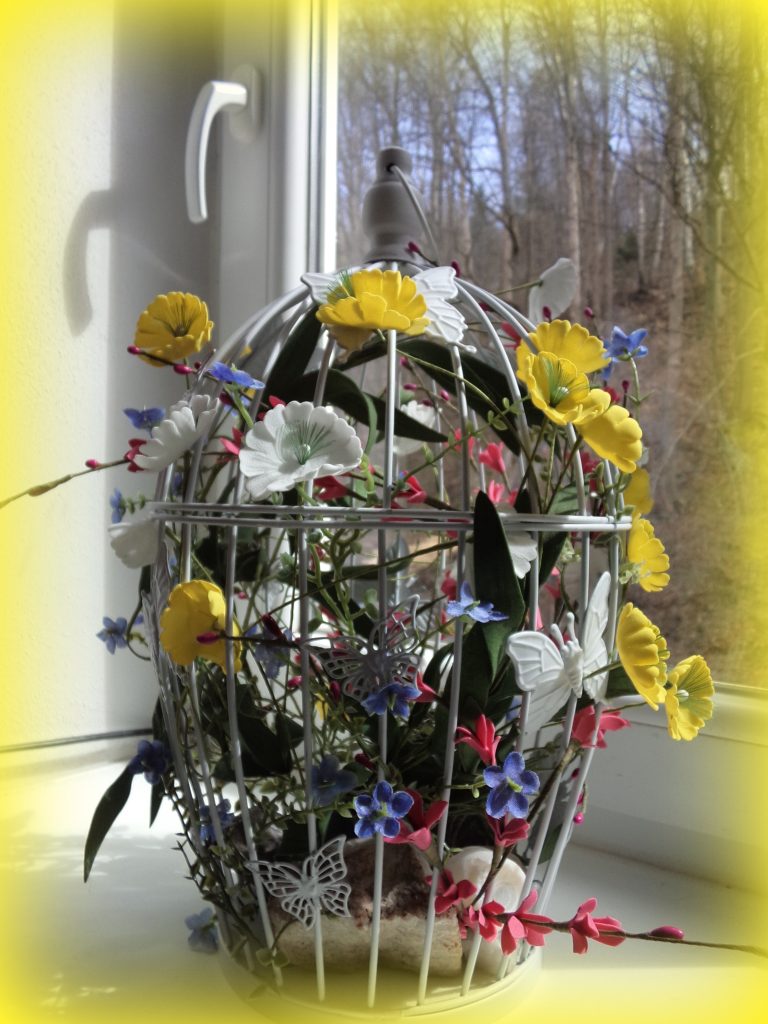 Našla jsem fotku z doby, kdy jsme bydleli ještě ve staré bytovce u lesa. Moc moc jsem se tehdy těšila na jaro, a takhle jsem si nazdobila jarní klec.